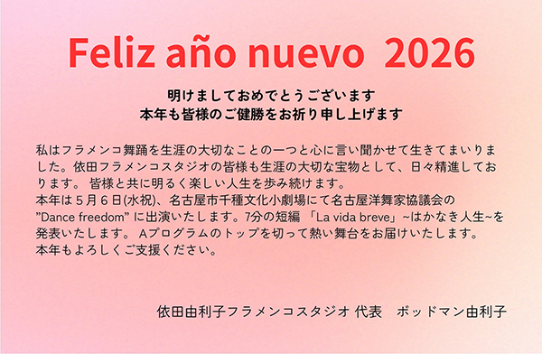 2026年もフラメンコを通して多くの方と触れ合えることを期待して、今からワクワクしています。